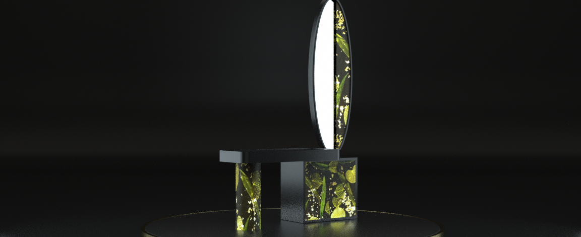 Designed during the isolation of the health crisis, this vanity symbolizes a reconnection to the world through its geometric forms, which evoke the continents. It offers a glimmer of hope for both mental and physical reconnection.
